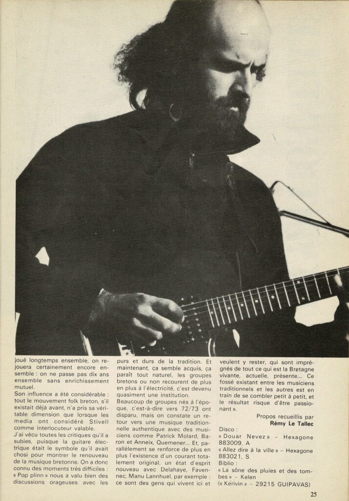 Autrement dit sans codification précise ni schémas préétablis. Entre l’exploration sonore globale qu’offre la programmation musicale de Radio Univers – voire aussi Fleuves– et… le Dan ar Bras de l’époque, ces deux rives d’un détroit musical et temporel ayant en partage cet autre voisinage : le « refus des frontières entre genres musicaux, les étiquettes prêtes à coller « . Et j’aime à croire que les gens qui nous écoutent sont un peu comme ça eux aussi.