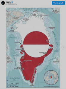 En concluant son communiqué par « Cher Groenlandais, déclarez l’indépendance ! », en référence à son « Declare independence » electropunk, Bjork rejoint là le vibrant plaidoyer d’une même teneur “Amis Inuits, résistez !”- lire ici & là– du grand géomorphologue, anthropologue, ethnologue et explorateur français Jean Malaurie – à retrouver là.