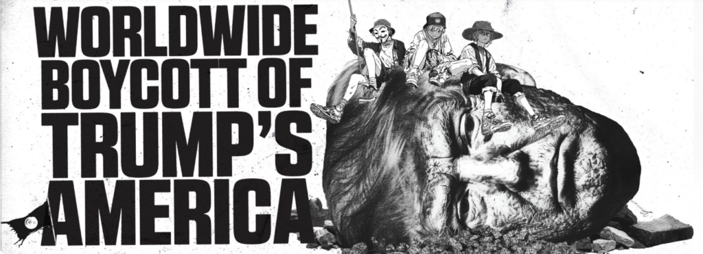 Quant à nous, tant philosophiquement que dans les faits aussi minimes soient-ils, ayant chacun.e « Le Pouvoir des sans-pouvoir », boycottons les produits de Trump’s America : cette semaine, choisissons une entreprise américaine et… arrêtons tout simplement d’acheter ses produits – comme nous en invite le magazine canadien Adbusters.